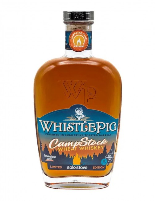 WhistlePig CampStock Solo Stove Wheat Whiskey is a limited-edition collaboration between WhistlePig Whiskey and outdoor brand Solo Stove, created to capture the relaxed spirit of gathering around a fire. This American wheat whiskey is built on a wheat-forward base and blended with WhistlePig rye, then finished in barrels that were toasted using Solo Stove’s firepit technology. The barrel toasting process introduces gentle smoke, toasted grain, and soft sweetness while maintaining an approachable, easy-drinking profile. Bottled at 86 proof, CampStock is designed for casual sipping without sacrificing flavor or character.
