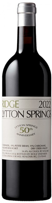 This bottling marks the 50th Lytton Springs from Ridge, and appropriately, the wine is beguiling and intense—pure Americana and emblematic of Ridge's commitment to the heritage varieties and vines in California. Lytton Springs is home to 100-plus-year-old Zinfandel vines interplanted with Petite Sirah and Carignane, among a few other varieties. This bottling has become a standard bearer for the notion of California Zinfandel: smoky clove spices, toasted cinnamon sticks, bramble fruits and spicy black plums. The palate shows intense concentration, red and black plums, black pepper, muddled mint leaves and an undertone of dried anise and thyme. Delicious and built to age.